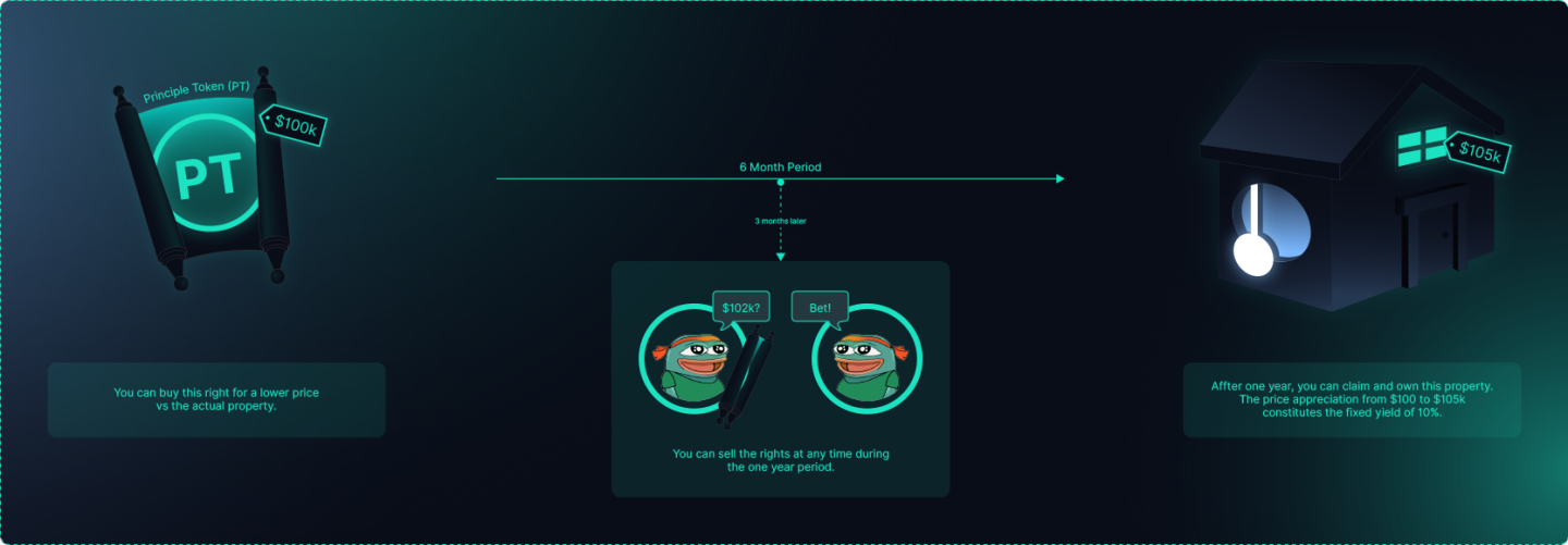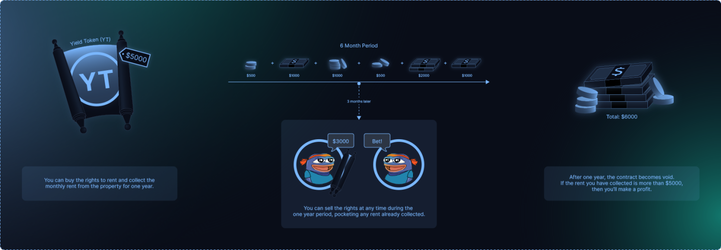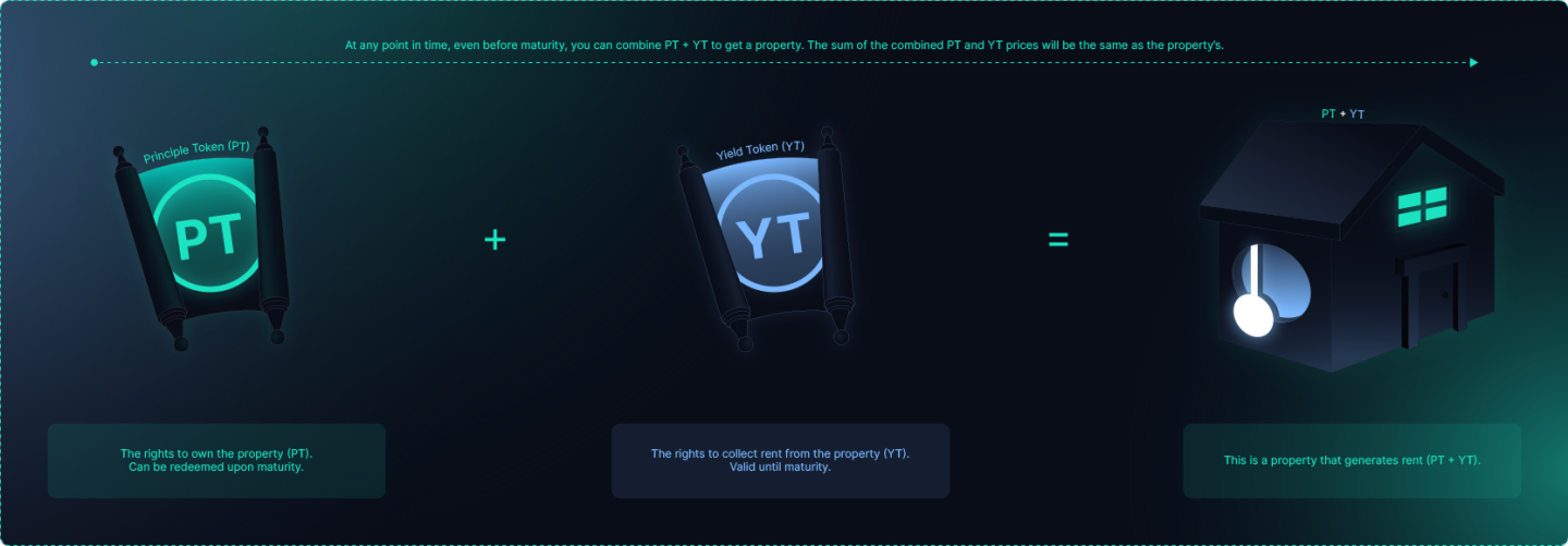 💡 Pendle是一个市场,房产所有者可以在这里分别分割和交易他们的本金(底层基础资产权利)和收益(租金支付权利)。