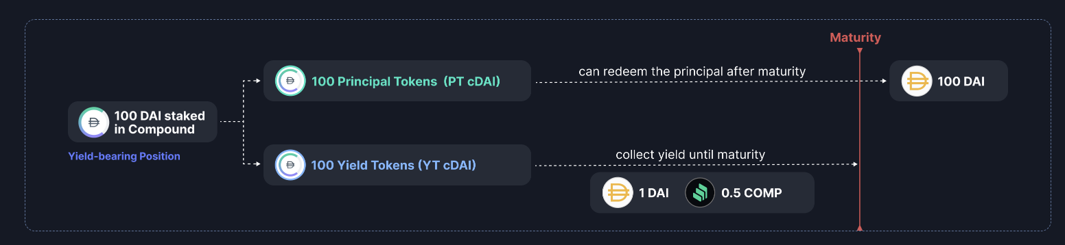 收益代币化意味着将生息资产分割为两个组件:本金和收益组件。