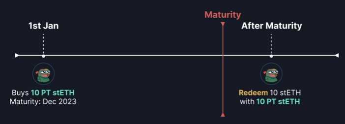 - 1个PT给您在到期时赎回1单位记账资产(例如1 ETH、1 DAI、1 USDe等)的权利。