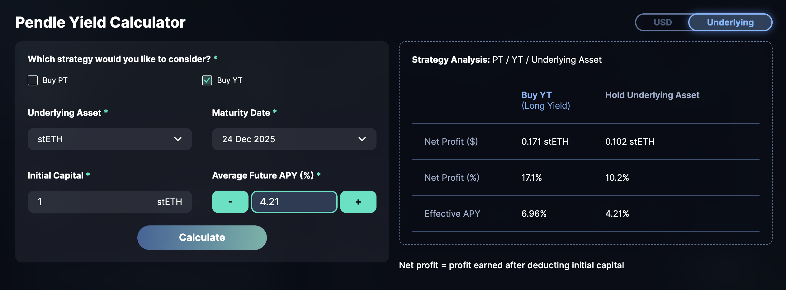 - Pendle上的LP vs. 存入底层池(例如stETH)